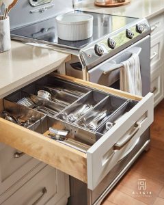 Having beautiful corner cabinetry to use the most of the space is vital in modern kitchen design. Utilize all the square footage and dead space and enjoy the elegant design. Installing corner cabinetry is a unique way to maximize storage capacity. Contact our professionals at Altair and we make the best out of your kitchen space.