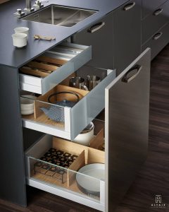 Drawers are designed to get the best use of the kitchen space. We design drawers to help you organize your kitchen and meet your storage needs while having everything on hand.