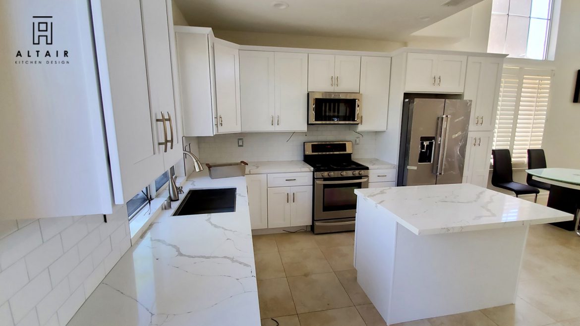 - Cabinet Style: White Shaker Cabinet WIth Quartz Countertop and Subway Tile Backsplash