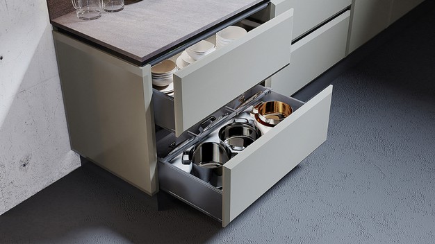 It is recommended to light the interior part of kitchen drawers. It is an excellent way to see inside the drawers better, especially at night. It is better to consider lights for this part, which turn on by opening the drawer door and turn off by closing it.
