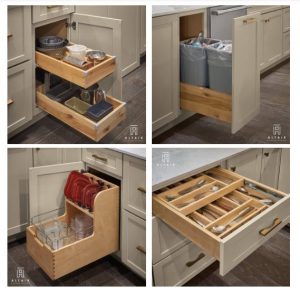 A systematic drawer can be considered by kitchen remodel contractors to easily access and minimize kitchen cabinet design elements for a small kitchen. What about 3-stories cabinets?
